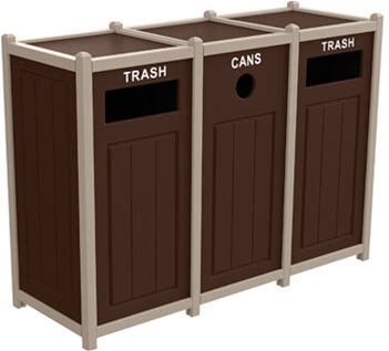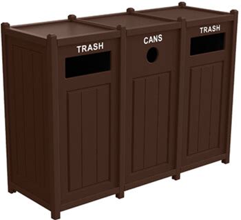 Two-Tone Panel Design Recycling Containers/ Three 33-Gal., Two Top, One Side-Load/ Cedar/Black Frame
