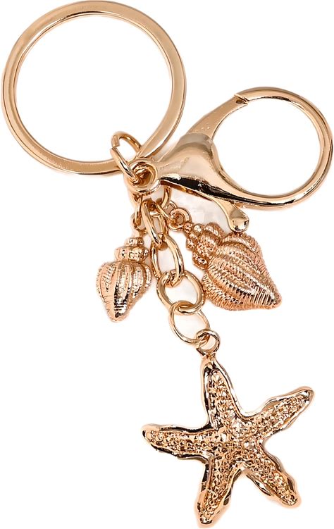 Beach Themed Keychain With Shells And Starfish, Made Of Golden Metal, Used For Backpack Pendants Or Car Keychains, Seaside Vacation Keychains