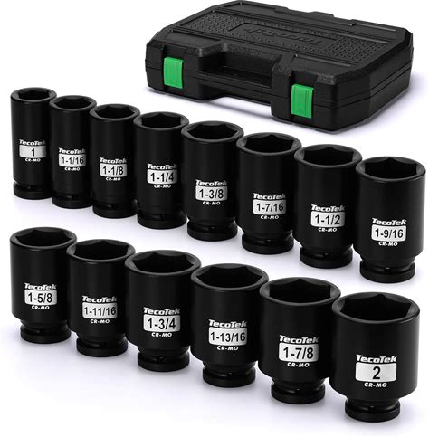 3/4" Drive Deep 6-Point Impact Socket Set, 14-Piece Heavy Duty Impact Socket Set, Cr-Mo, SAE (1" To 2"), For Large Vehicle And Apparatus Maintenance(1" To 1-1/2" (9-Piece))