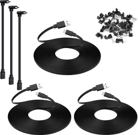 3-Pack 25 ft Micro USB Extension Cable Compatible With Wyze Cam V4, Wyze Cam Pan V3, Yi Cam, Nest Cam, Blink Mini Security Camera, Long Flat Power