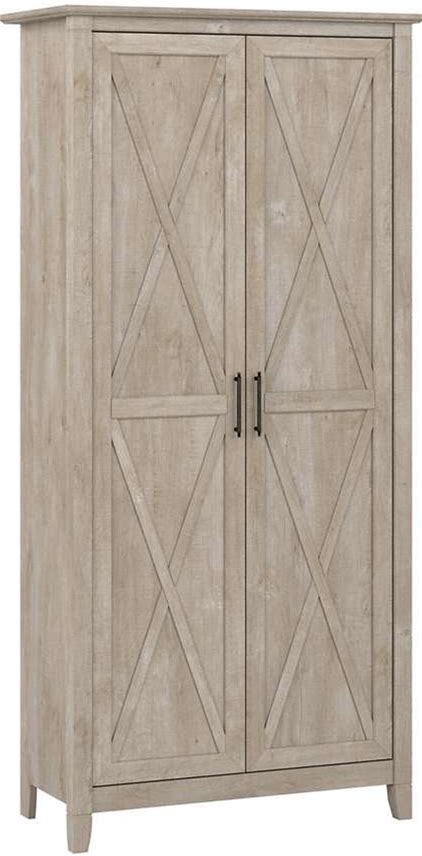 White Kitchen Pantry Cabinet Barn Door Drawer Adjustable Shelves 4-Tier Wood Cupboard Kitchen Dining