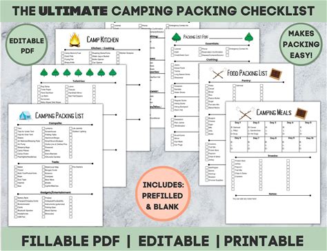 Camping Trip Packing List And Meal Plan Printable Bundle