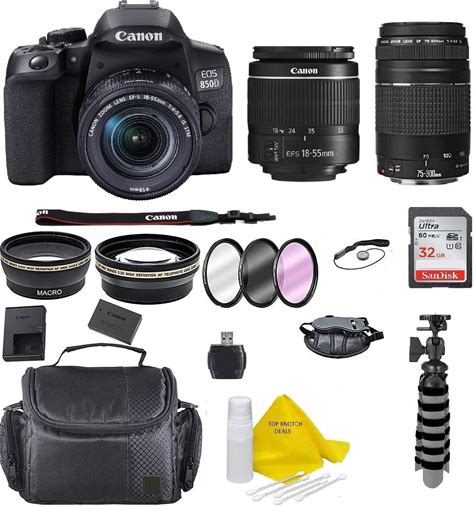 Canon - EOS 850D / Rebel T8i DSLR Camera With 18-55mm Lens + Extra Lenses & Battery Bundle (International Version)