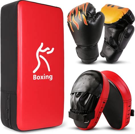 3-In-1 Kids Youth Boxing Set Punching Mitts, Kick Pads, Gloves For Boxing. Odoland. Red. Strike Pads & Mitts.