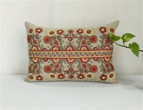 Crewel Embroidered Floral Pillow Cover: Decorative Throw Pillow
