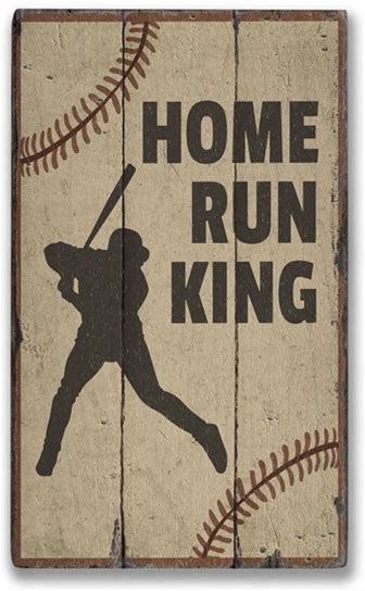 Home Run King Rustic Distressed Sign, Personalized Wood Sign