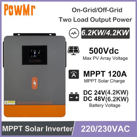 Powmr 6.2KW 4.2KW Hybrid Inversor With 120A MPPT Solar Charger Controller DC 24V 48V To 230V AC Pure