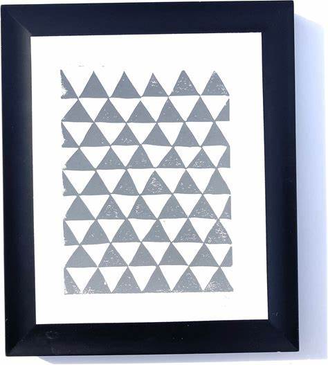 Geometric Triangle Hand-Pressed Wall Art - Grey Abstract Linoprint 8X10- Linoleum Block Print - Minimal Gallery Wall - Black Wall Art Poster