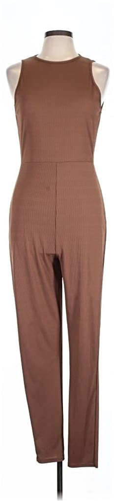 Prettylittlething Jumpsuit Turtleneck Sleeveless: Brown Solid Pattern Jumpsuits - Women's Size 12