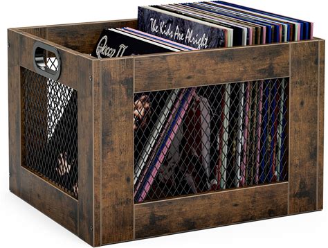 TEMI Vinyl Record Storage Crate - Large Wooden Record Holder For 70+ Albums - Industrial-Style Record Organizer And Durable Record Storage Solution