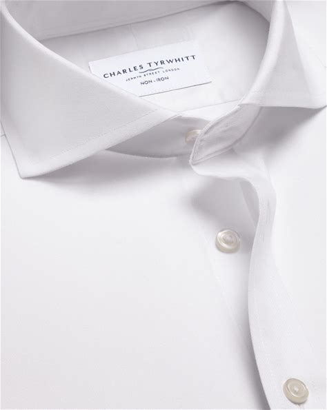 Non-Iron Twill Cotton Dress Shirt - White Single Cuff Size Large By Charles Tyrwhitt