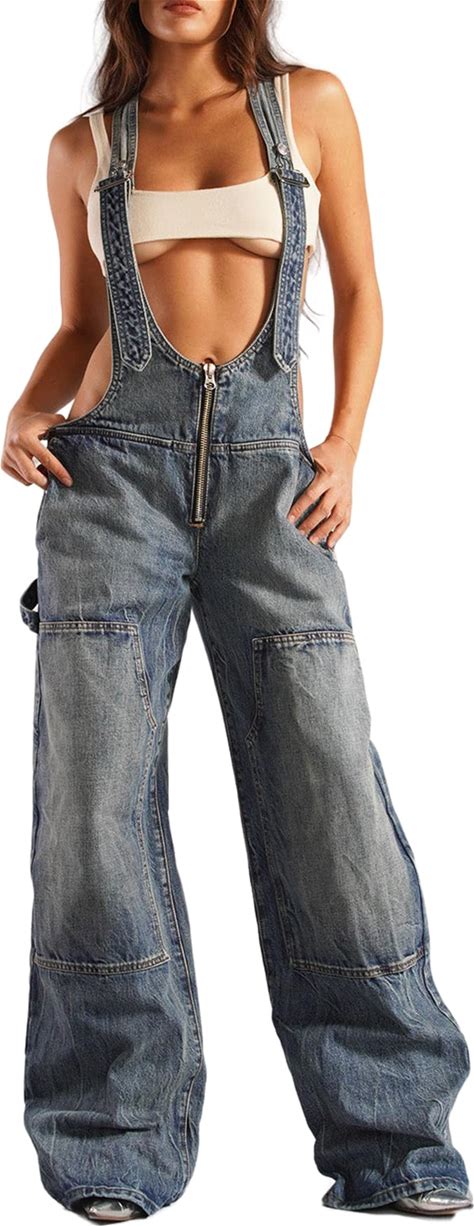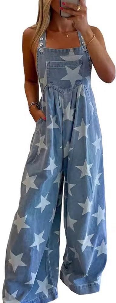 Flvsun Women's Straight Wide Leg Jeans Overalls Baggy Fit Bib Denim Jumpsuit Pants Adjustable Straps