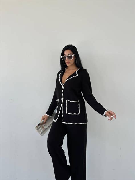 Women Knitted 2 Piece Jacket And Pants Set