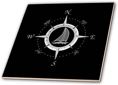 12 Inch Ceramic Tile - Black And White Nautical Compass For Sailing. Creative Studios - Nautical Sailing