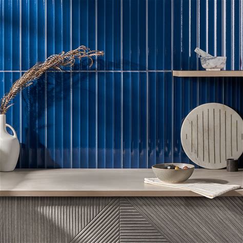 Colorplay Fluted Nautical . D Crackled Glossy Ceramic Tile | Blue | 4.5X18"