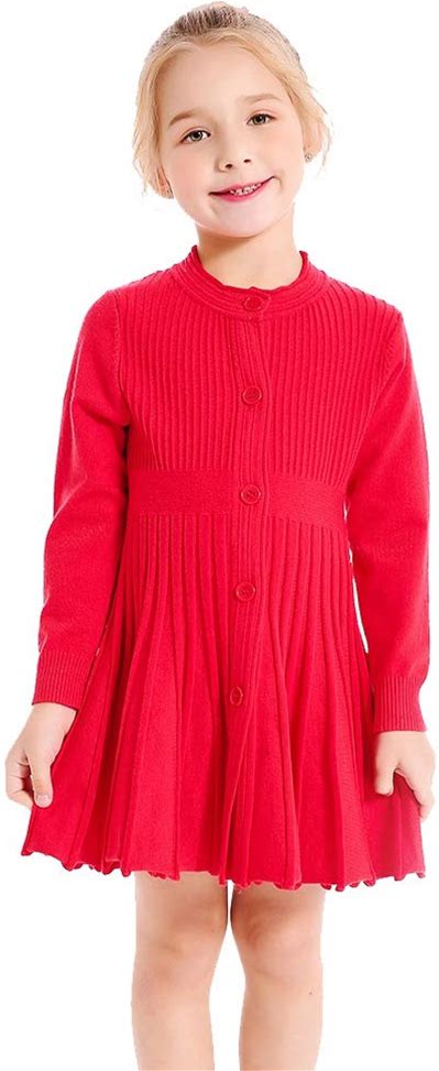 SMILING PINKER Little Girls Pleated Dress School Uniform Long Sleeve Button Front Knit Sweater Dress