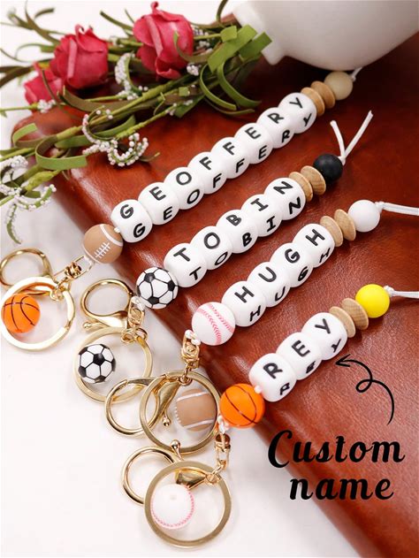1Pc Customized Silicone Abacus Bead Keychain With Sports Ball Design And 110 English Letters, Personalized Gift With Custom Name For Friends , Colorful, Rugby/Baseball/Football/Basketball, Cute, Adorable, Contracted, Kawaii,