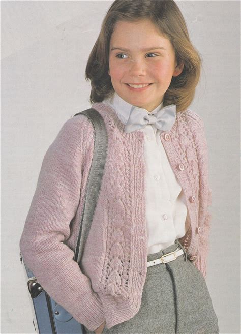 Girls Cardigan Knitting Pattern PDF Childrens And Toddlers 22, 24, 26, 28 And 30 Inch Chest, Lacy Patterned, E-Pattern Digital Download