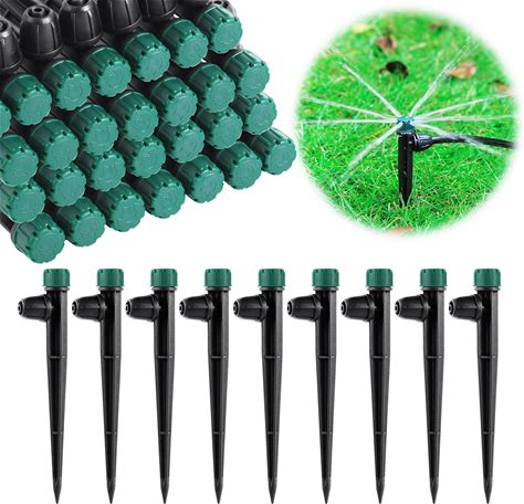Topiverse 50 Pcs Drip Irrigation Emitters, Adjustable Flow 0-18 GPH Irrigation Drippers With Stake, 360 Degree Flow Sprinkler Head, Micro Sprinkler