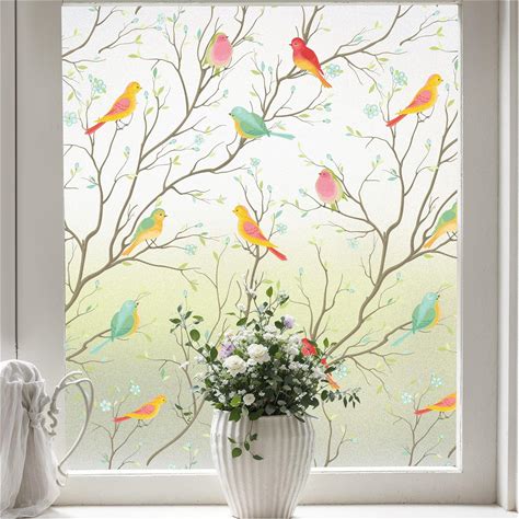 Coavas Stained Glass Window Film, Decorative Frosted Glass Window Privacy Film, Static Cling Non-Adhesive Windows Sticker For Front Door Bathroom Heat Control Anti UV, 45.2 X 157 Inches