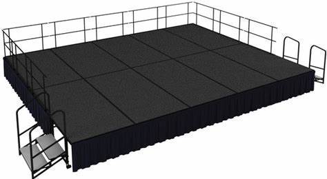 NPS Transfix Adjustable Height Stage, Polydeck Floor, 96"L X 48"W X 16" - 24"H, Black, TFXS48961624P